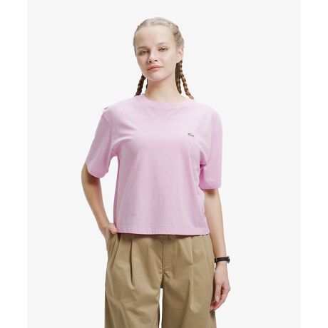 [型番:TF026J-99]ピグメントダイによる上品なムラ感がニュアンス深いのクロップドTシャツ・コットン×ポリエステルのシングルジャージ素材・顔料による製品染めで、1点ごとに表情が異なるデザイン・ボトムとバランスが取りやすいクロップド丈のリラックスフィットシルエット・左胸にワニロゴパッチを配置RELAXED FIT