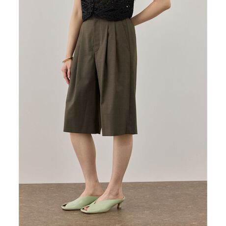 スッキリとしたウエスト周りの2タックスラックスデザインで、様々なトップスとも相性の良いハーフパンツはこれから来る夏まで履けるアイテム。