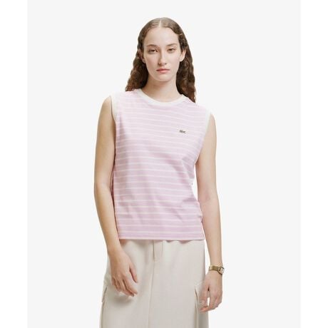[型番:TF025J-99]クリーンなボーダー柄とレギュラーフィットで、汎用性に優れるノースリーブTシャツ・ややライトウェイトに仕立てたコットンシングルジャージ素材・ベーシックなバイカラーボーダーパターン・適度なゆとりを持たせたレギュラーフィットシルエット・さり気なくあしらったセンターバックの切り替えラインとサイドスリット・左胸にワニロゴパッチを配置Regular Fit