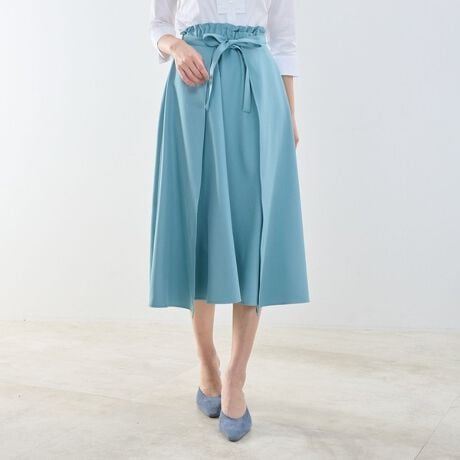 ツイル織りの素材を使用したフレアスカート。サイドから前後にリボンを結び替えることで表情が変わる2通りのデザインを楽しめます。今シーズンは新たなカラー展開に仕上げ、着丈もやや長めに調整することで、よりバランスよく着用できる一着に。きれいめにもカジュアルにも取り入れやすいアイテムです。同素材のジャケット(30-61-22-739)とのセットアップ着用も可能です。