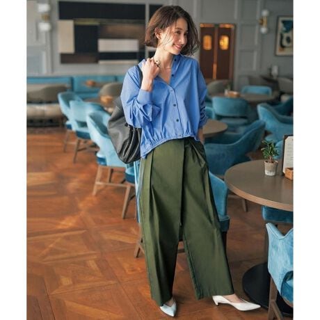 ■デザインアシンメトリーなタックデザインがアクセントのワイドパンツ。リラクシーなシルエットで、ウエスト周りをさりげなくカバーしてくれます。コンパクトなトップス合わせやトップスインスタイルがバランス良くおすすめです。トレンドのレースアイテムなど、フェミニンなトップスとも相性よく着用いただけます。