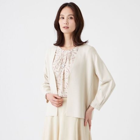 通勤、お出かけ、かしこまりすぎないセレモニーなど幅広く活躍。ワンピースにも合わせやすい着丈です。
