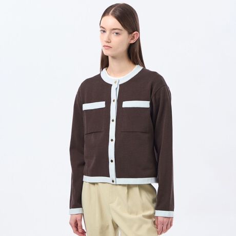 ボクシーなシルエットをそのままに、ジャケットライクなカーディガンとして登場です。ドロップショルダーでタイトすぎないシルエットの中にゴールドボタンを施し、きちんと感のあるニットカーディガンに仕上げています。胸元のポケットはフラット仕様ですっきり仕上げています。