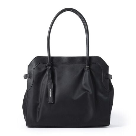 [型番:U1101710__]26SSシーズンの美バッグは生地をメインにさらに軽量化しました。タックを取り、ポイントの金具をつけた、甘すぎないデザインです。13インチのパソコン、A4サイズのものもすっきり収納。ポケットのほか中でペンを探さなくてもいいようにペンホルダーも付けています。
