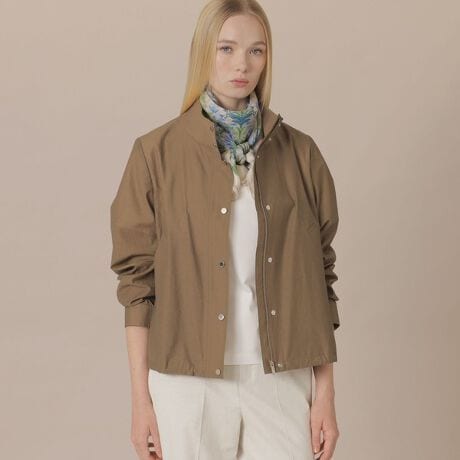 裾の絞り具合でお好みに合わせてフィット感を調整していただけるショートコートです。フレアスカートやワイドパンツなどボリュームボトムスとも相性良く、ライトなシャツ感覚でも羽織れ、季節の変わり目に活躍するアイテムです。