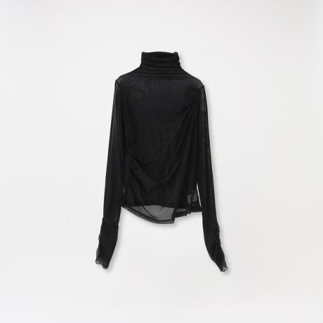 透け感のある見た目に、ギャザーによるラインがアクセントになったシアートップス