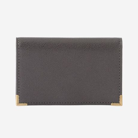 [型番:G1283003__]30枚ほどの収納力を持つ通しマチ仕様の名刺入れです。W字マチなので名刺の端々が干渉しないストレスフリーな仕様になっています。伝統的な英国の革小物に使われる角がね、くわえカンをモチーフにし、トラッドな顔ですがコンパクトな造りなので、現代のスタイルにマッチするデザインです。耐久性に優れ、傷が目立ちにくいヤギ革をタンニンで鞣し、革本来の表情が充分に表現されています。