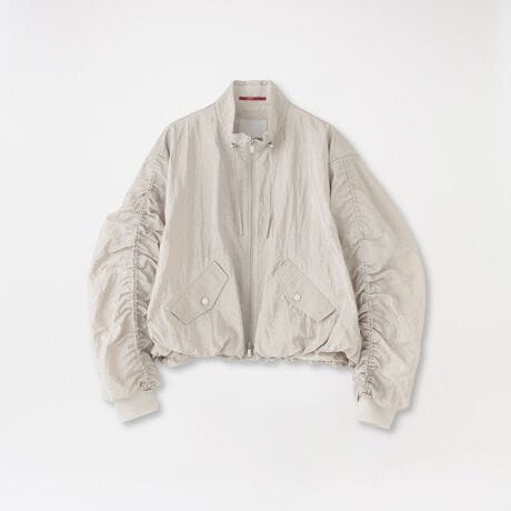 丸みのあるコクーンシルエットが印象的なブルゾン。衿裏にはリブをあしらい、短めのスタンドカラーですっきりとしたバランスに仕上げています。
