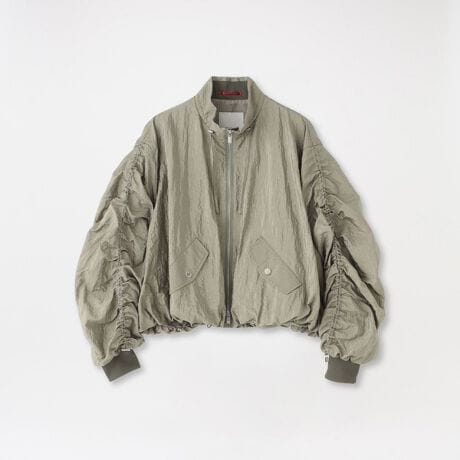 丸みのあるコクーンシルエットが印象的なブルゾン。衿裏にはリブをあしらい、短めのスタンドカラーですっきりとしたバランスに仕上げています。