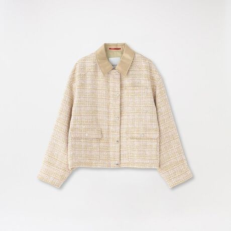 春らしいカラーリングのツィード素材を使用したショート丈ワークブルゾン