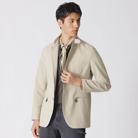 テーラードジャケットをベースにモダンなイメージでファスナー使いポケットなどを使用しています。