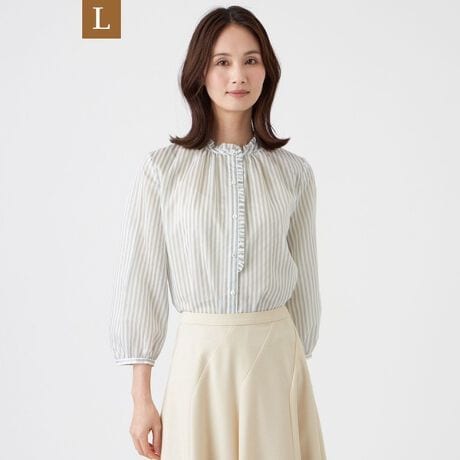 【L】【ウォッシャブル】マルチストライプブラウス