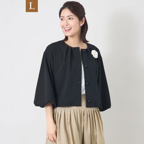 ジョーゼット調とツイル調の表情を掛け合わせ、軽さとふくらみをバランス良く融合したカット素材。ジャージならではの高いストレッチ性に加え、適度なハリ感があり、きれいなシルエットをキープします。快適な着心地と上品な見え方を両立した素材です。
