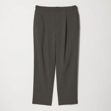 ウールライクなキレイ目の素材感ながらも麻のような肌離れの良さが特徴のテーパードパンツ。