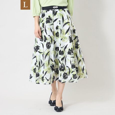 ウエストにタックを入れ、裾に向かってたっぷりとフレアを出したスカート。ウエストはグログラン仕様で、後ろ側のみにギャザーを入れることで、すっきり見えと着用時の快適さを兼ね備えています。