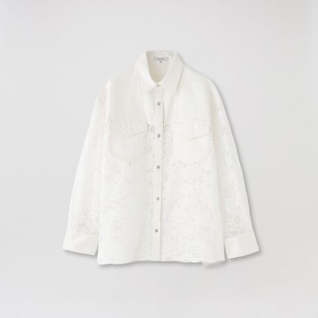 デニムとレースの組み合わせが、カジュアルで華やかなコンビシャツ