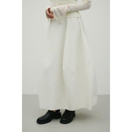 WHT,BLK:モデル身長163cm(Mサイズ着用)BEG:モデル身長166cm(Mサイズ着用)バルーンシルエットが360度美しいスカート。軽量素材を使用し、ボリュームがありながらも軽やかに仕上げました。パネルラインで立体感をだすことで、ウエスト周りはすっきりとした印象に。ボリューム感のある裾とのコントラストを与え、自然にスタイルアップが叶う一枚です。右脇にシームポケットあり。バックゴム仕様。裏地付き(WHT)。透け感なし、ストレッチなし。【お手入れ方法】手洗い可