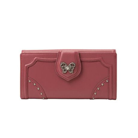 アンティークシルバー調のバタフライブローチが印象的な、クラシックで上品なムードを纏った「ナーシャ」シリーズ。バタフライのブローチにはハートモチーフをさりげなく忍ばせ、輪郭を柔らかなフォルムに仕上げることで、クールさの中にも女性らしい優しさと温もりを感じさせるデザインに仕上げました。本体にはやぎ革を使用し、しっとりと手に馴染む質感と、傷が目立ちにくい実用性を両立。外ポケット付きで使いやすいがま口タイプや、収納力に優れた長財布、定番人気の口金二つ折り財布、パスケースなど、デイリーからフォーマルまで対応できるラインナップを展開しています。ANNA SUIらしい世界観と実用性を兼ね備え、毎日使うほどに愛着が深まる、大人のための上質なレザーシリーズです。【メーカーサイズ寸法(実寸)】サイズ:H:10/W:19/D:4/重さ:170g/小銭入れ:1/札入れ:1/カードスロット:14/フリーポケット:4