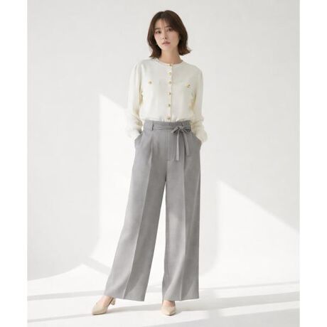 【オンもオフも頼れる!着回し自在なタックワイドパンツ】【Point】・毎シーズン人気の定番ワイドパンツがスッキリ見えるタックデザインに。・シンプルで洗練されたシルエットはクラシカルでありながらほんのりモードな印象に。・長すぎない丈感でフルレングスパンツにありがちな靴の合わせにも悩まずに着用いただけます。・ウエストリボンがトップス問わず、メリハリのあるスタイリングを叶えます。・ウエストリボンは取り外し可能。固定ループを施し、着用中もズレにくく美しいバランスをキープします。・シンプルながらも着心地と使いやすさにこだわった1枚です。ケア方法:手洗い可能透け感:なし裏地:あり伸縮性:あり光沢感:なし生地の厚さ:中肉