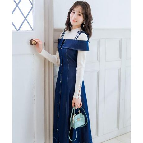リボンストラップオフショルキャミワンピース
