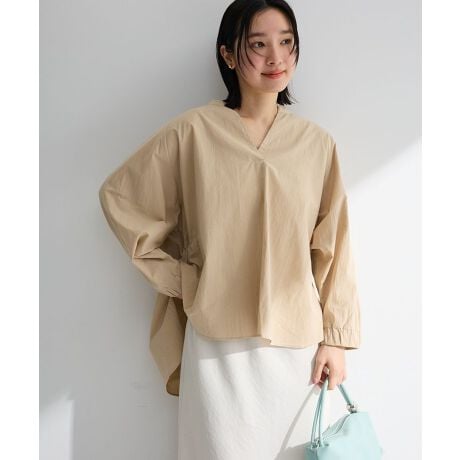 ナチュラルに映える上品ブラウス程よい抜け感を演出するスキッパーネックが、洗練された印象を与える一枚です。シンプルながら計算されたシルエットで、さらりと着るだけで大人カジュアルなスタイルが完成します。袖ゴム仕様なので袖丈の調整がしやすく、手元にニュアンスを加えられます。軽やかな着心地とナチュラルな素材感が、日常使いにぴったりです。ヒップにかかる丈感で安心感があり、パンツにもスカートにもバランス良く合わせられます。オフィスカジュアルから休日のお出かけまで幅広いシーンに対応できるため、着回し力の高いブラウスをお探しの方におすすめです。ワードローブに加えることでコーディネートの幅が広がります。※オフホワイトのみ透け感あり透け感[なし]