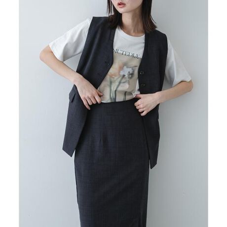 清涼感あふれる風合いと、計算されたシルエットが融合した主役級のジレ。リネンのようなナチュラルな表情を持ちながら、シワになりにくくお手入れが簡単な高機能素材を採用しました。クリアでシンプルなノーカラーのVネックラインに対し、ウエストから広がるペプラムデザインが、自分らしい華やかさを添えてくれます。いつものトップスに重ねるだけで、日常から特別なシーンまでスマートに格上げしてくれる、この夏欠かせない一着です。