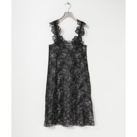 チュール素材と立体的なフラワーモチーフが織りなすコントラストが魅力のワンピース。