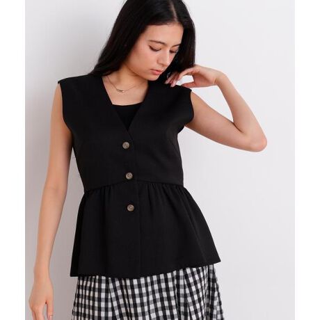 スラブ調のナチュラルな表面感が、涼やかな印象を与えるブラウス。すっきりとしたVネックラインが顔まわりをシャープに見せ、高めのウエスト切り替えから広がるフレアが、ふんわりとしたペプラムシルエットを描きます。女性らしい立体感のあるデザインで、同素材のパンツとのセットアップスタイルもおすすめです。