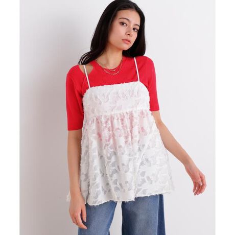 レイヤードスタイルに活躍するチュニックブラウス。胸まわりはすっきりとタイトに仕上げ、胸下からふんわりと広がるシルエットが女性らしい印象を演出します。前後差のあるレングスが動きに表情を添え、肩ひもは長さ調整が可能なのも嬉しいポイントです。ホワイトはジャカードレース素材で華やかに仕上げました。軽やかな素材感で、レイヤードしても重くならず、軽快に着用いただけます。
