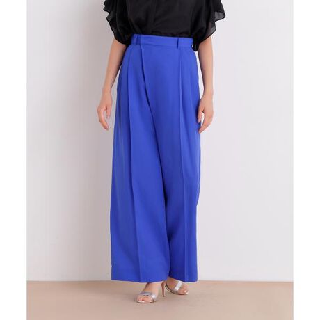 フロントのラップデザインがモードな印象を与えるワイドパンツ。ウエストはフロントをベルト仕様にすることで、きちんと感のある仕上がりに。やや高めに設定したウエスト位置が、スタイルアップ効果を叶えます。シンプルで合わせるアイテムを選ばず、オン・オフ問わず活躍する一本。ベーシックなブラックと、スタイリングに鮮やかなアクセントを添えるブルーの2色展開です。