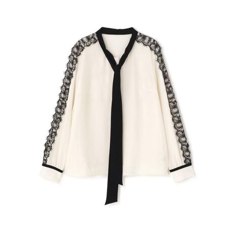 レースコンビバイカラーリボンブラウス