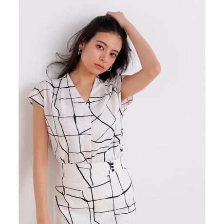 ラインプリントタックブラウス