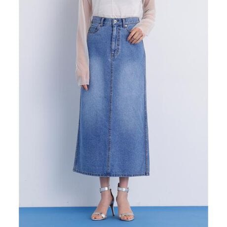 タイトなラインで美しく履ける、きれいめカジュアルを意識して仕立てたデニムスカート。ライトオンスのデニムでシーズンを問わず快適に着用できる素材感に仕上げました。足首がのぞく長めのレングスは、歩くたびにさりげない肌見せを演出し、女性らしい抜け感をプラス。夏はサンダル、秋口にはショートブーツとも好バランスで合わせられます。カットソーからニットまで幅広いトップスと相性が良く、オンオフ問わず活躍する一着です。