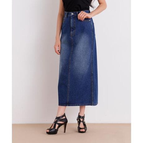 タイトなラインで美しく履ける、きれいめカジュアルを意識して仕立てたデニムスカート。ライトオンスのデニムでシーズンを問わず快適に着用できる素材感に仕上げました。足首がのぞく長めのレングスは、歩くたびにさりげない肌見せを演出し、女性らしい抜け感をプラス。夏はサンダル、秋口にはショートブーツとも好バランスで合わせられます。カットソーからニットまで幅広いトップスと相性が良く、オンオフ問わず活躍する一着です。