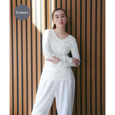 HAKUJIが追求する着心地の良さとミニマルなデザインをベースに、大人のヘルシーな魅力を引き出すバックオープンデザインを採用し、前後2WAYでの着用も可能。