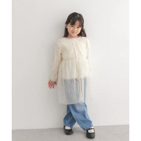 ふんわりとしたチュール素材が軽やかな印象の2WAY仕様のチュニック。前後どちらでも着用でき釦をあければ羽織にもなります。シンプルなトップスに重ねるだけで程よいボリュームと動きが生まれスタイリングもぐっと華やかになり、いつもの服にプラスするだけで特別感を演出してくれる1枚です。甘くなりすぎないデザインで、デニムやパンツスタイルとも相性が良くカジュアルにもキレイ目にも合わせていただけます。