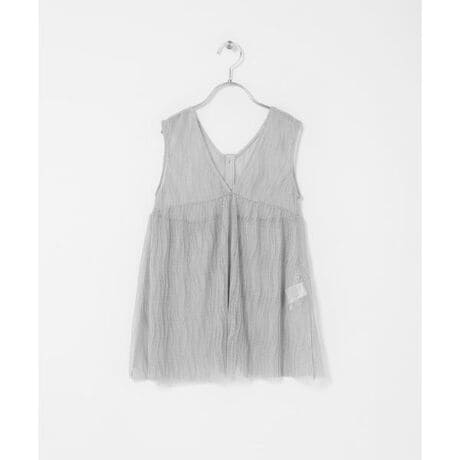 ふんわりとしたチュール素材が軽やかな印象の2WAY仕様のチュニック。前後どちらでも着用でき釦をあければ羽織にもなります。シンプルなトップスに重ねるだけで程よいボリュームと動きが生まれスタイリングもぐっと華やかになり、いつもの服にプラスするだけで特別感を演出してくれる1枚です。甘くなりすぎないデザインで、デニムやパンツスタイルとも相性が良くカジュアルにもキレイ目にも合わせていただけます。
