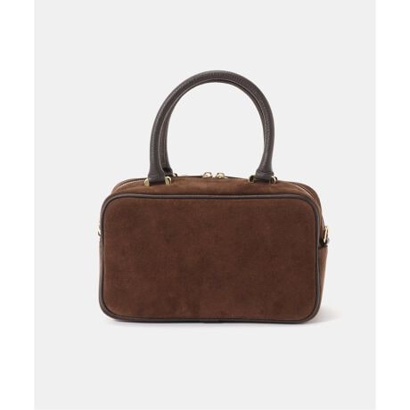 落ち着いたスエード素材と牛革を組み合わせた、上品なスクエアバッグ。
