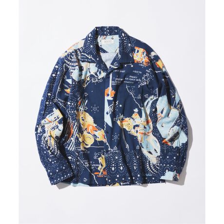 BINDU定番のビンテージ風スーベニールマッププリントをあえて大ぶりに設定した「140%スケール」のプリントは、JSだけの特別仕様。NEW YORK、FLORIDA、TEXAS、HAWAII、4つのエリアを象徴する柄が、スタイリングに遊び心をプラス。