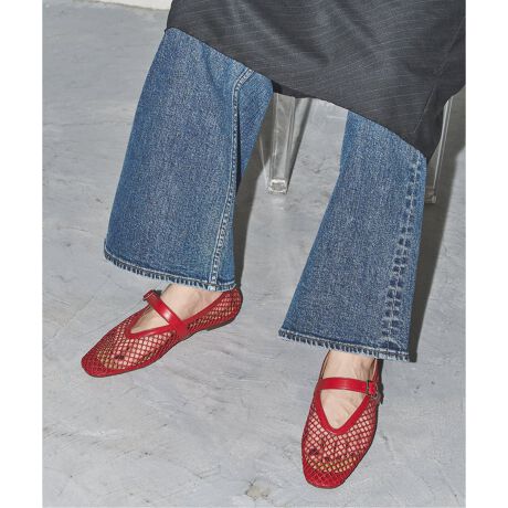 細すぎないストラップとネットの抜け感で真夏でも履けるフラットシューズです。