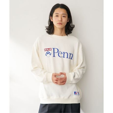 胸元のカレッジロゴが主役になる、存在感のあるクルーネックスウェット。