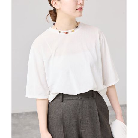 ほんのり透けるシアー感と、やわらかな落ち感が上品な印象を演出します。
