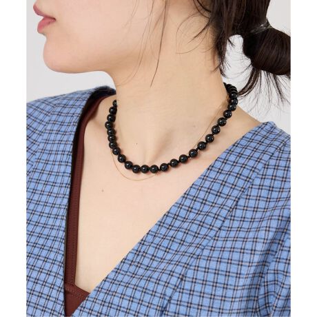 ブラック(001):チェーン/真鍮+ロジウムめっき ストーン/オニキス