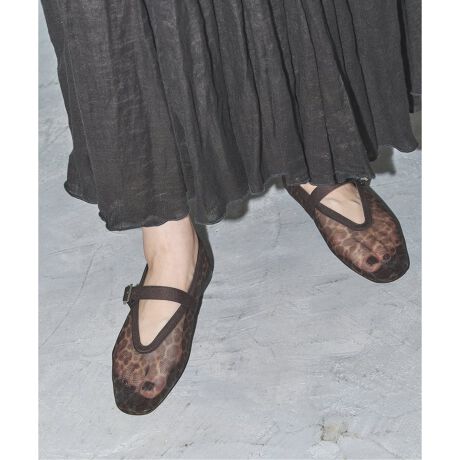 ナイロンチュールにレオパード柄をプリントしたメリージェーン。