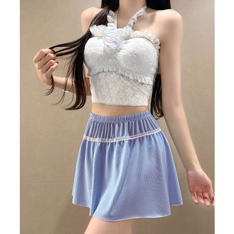 花柄レースフリル水着三点セット体型カバー