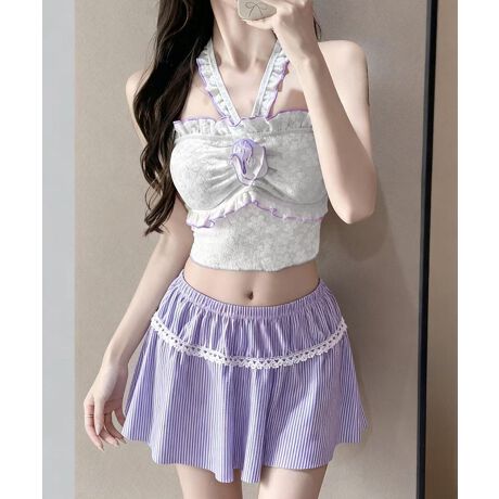 花柄レースフリル水着三点セット体型カバー