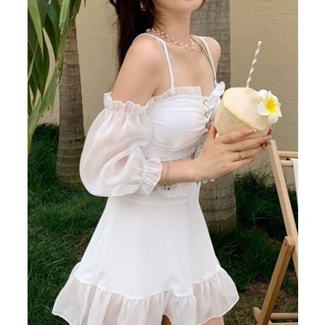 取り外し可能なシースルースリーブで、気になる二の腕を程よくカバーし、バランスの取れたシルエットに。