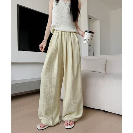 ウエストはリラックス感のある仕様で、締め付け感なく着用可能です。