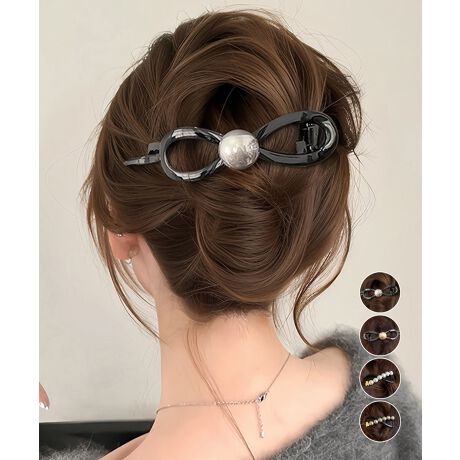 フェイクパール装飾が特徴のバナナクリップです。