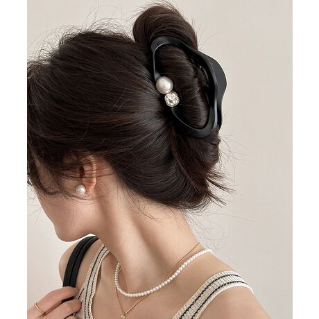 存在感のあるビッグフェイクパールが目を引く、トレンド感たっぷりのバンスクリップ。